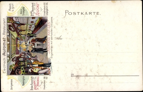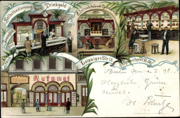 1897 - Berlin - Leibzigerstr. 13, das erste eingerichtete Restaurant mit dem Namen "AUTOMAT"